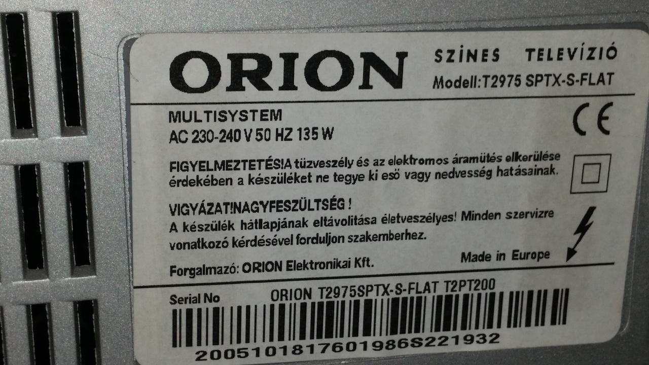 Hibás (nincs kép) 72 cm-es ORION TV ingyen elvihető. Típusa: T2975 SPTX-S-FLAT.
