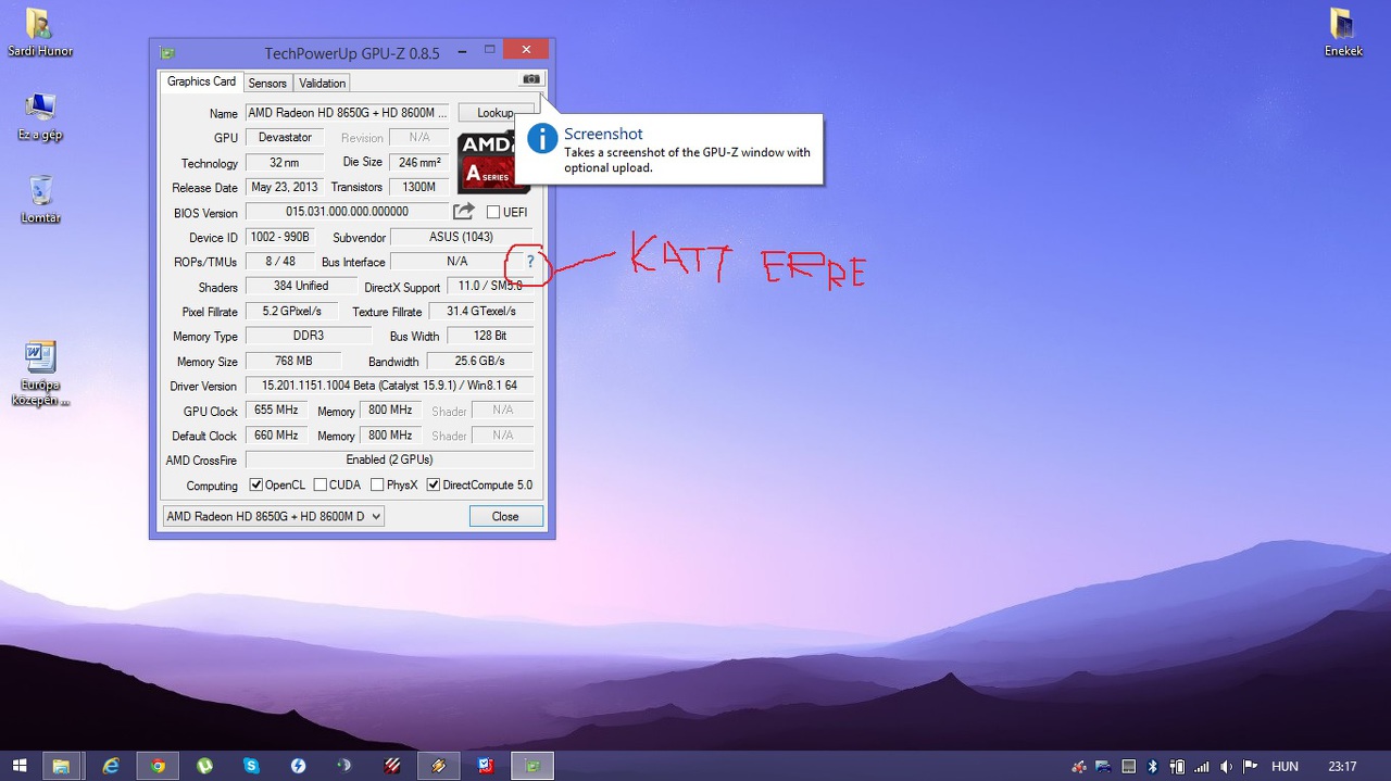 Van egy ASUS R510DP laptopom, amiben van egy AMD A10 APU, melyben egy Radeon HD 6850G rejtozik, illetve melle dedikaltak egy HD 6870M kartyat. Ezek elvileg mukodnek egyutt, es be is van kapcsolva a Dual Graphics opcio, de a dedikalt kartya egy bizonyos ido utan felezi az orajeleit ez kb 72 fok utan tortenik, es sajnos ilyenkor csokken az FPS szam, viszont nem segit ra a proci GPU-ja. Probaltam mar egy halom drivert de semmi valtozas, ugyn ez a gondom vele. Szerintetek mi lehet a baj? Csatoltam kepeket is. A hd8670 orajelei 975 rol 400 ugranak le 72 fok felett, viszont nem no meg a 8650 orajele. Ha kikapcsolom a dual graphicsot akkor is pont igy mukodik a dolog, pedig elviekben akkor csak az APU grafikus magja kellene mukodjion ha jol gondolom.