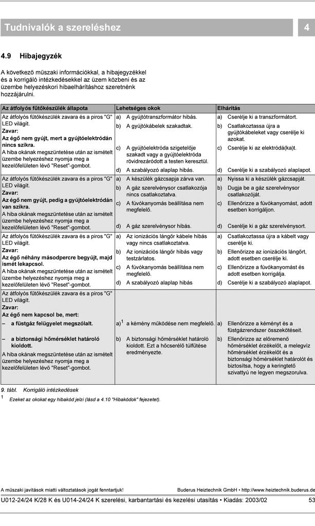 Szia! A doksija amiben mindent megtalálsz ha érdekel a berendezésed működése és használati leírása stb. . A hibajelzések alábbi változataira érdemes odafigyelni. A szerelő akire Te gondolsz az elektroműszerész lenne, mert, hogy a kazánszerelő nem javíthat panelt. Talán másik szerelőnek is meg kellene nézni ezt a készüléket nehogy mégse panelhiba legyen, mert az nagyon zsebbenyúlós javítás lesz a perifériás hibák javításához képest.