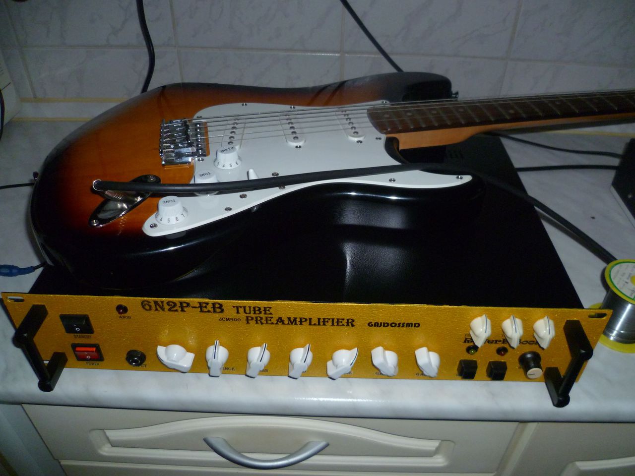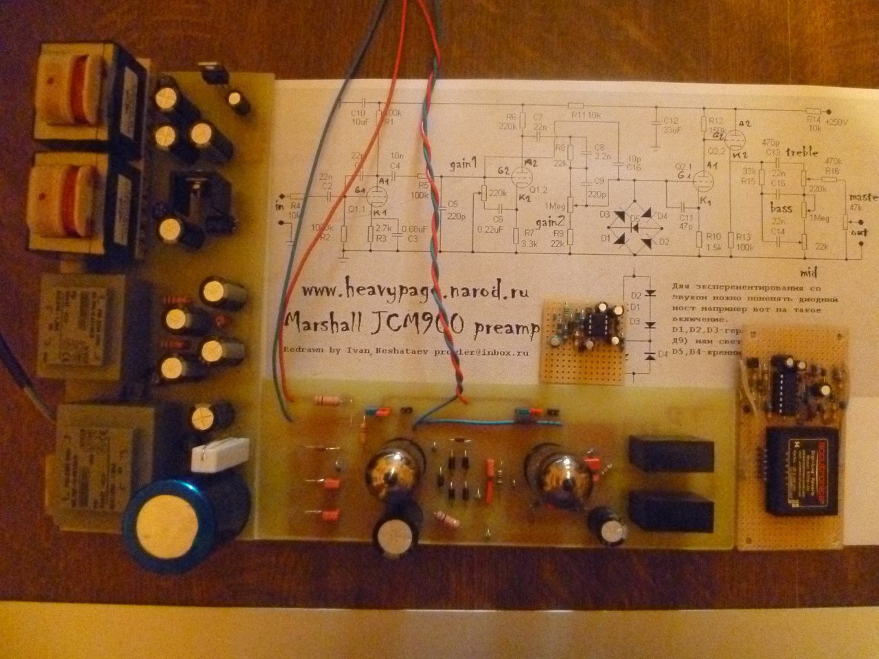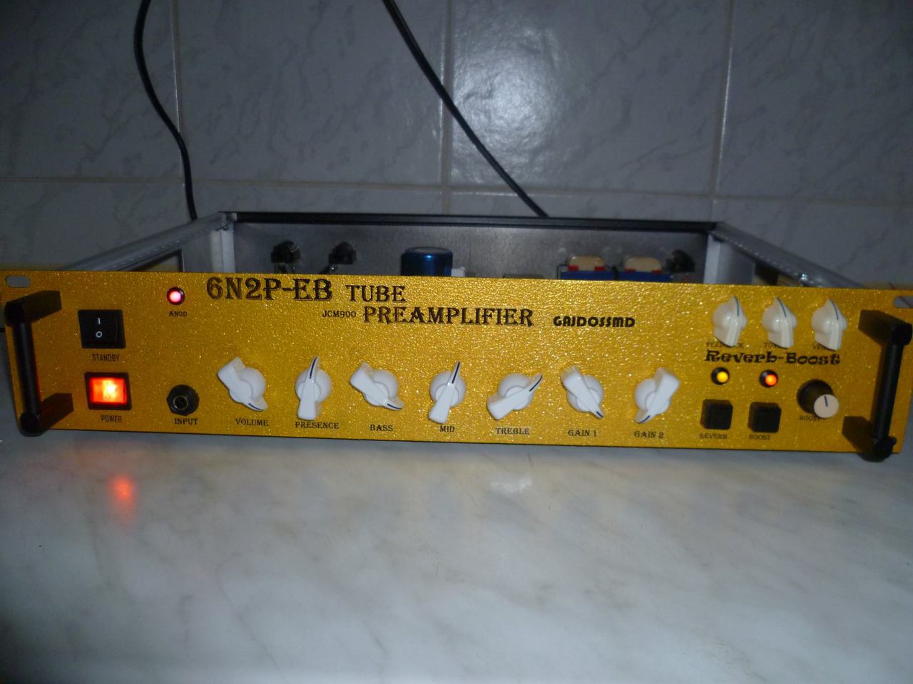 Összedobtam gyorsan egy csöves gitár előfokot JCM900 alapokon és egy kis Reverb és Booster kiegészítéssel fűszereztem. A csövek 6N2P-EB viszont jumperelhető és akkor használható ECC83/12AX7-el is. Teszteltem különböző csövekkel és az orosz csövekkel produkálta számomra a jobb a hangzást!