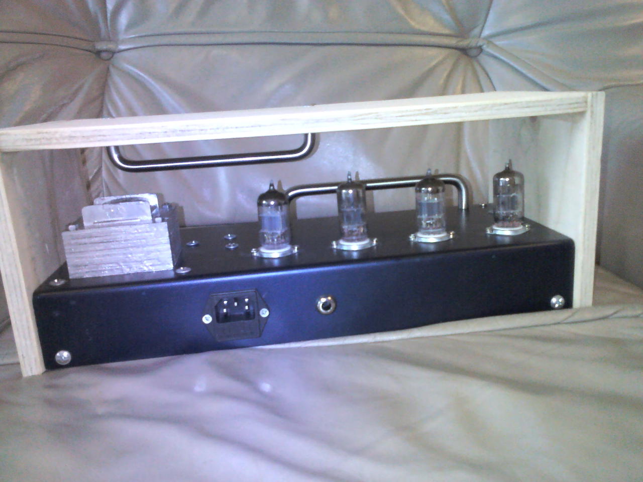 ECC82 és ECC83 csővel volt tervezve az előfok, de nagyon sok volt az erősítésük. Most 6N1P és ECC 85 van benne. A ferrit tekercs nem lett a legszebb, de működik. Még a bass selektort kell bekötni. Egyébként ez egy Ampeg SVT előfok, némi módosítással. Nem zúg, nem gerjed, nagyon szép hangja van.