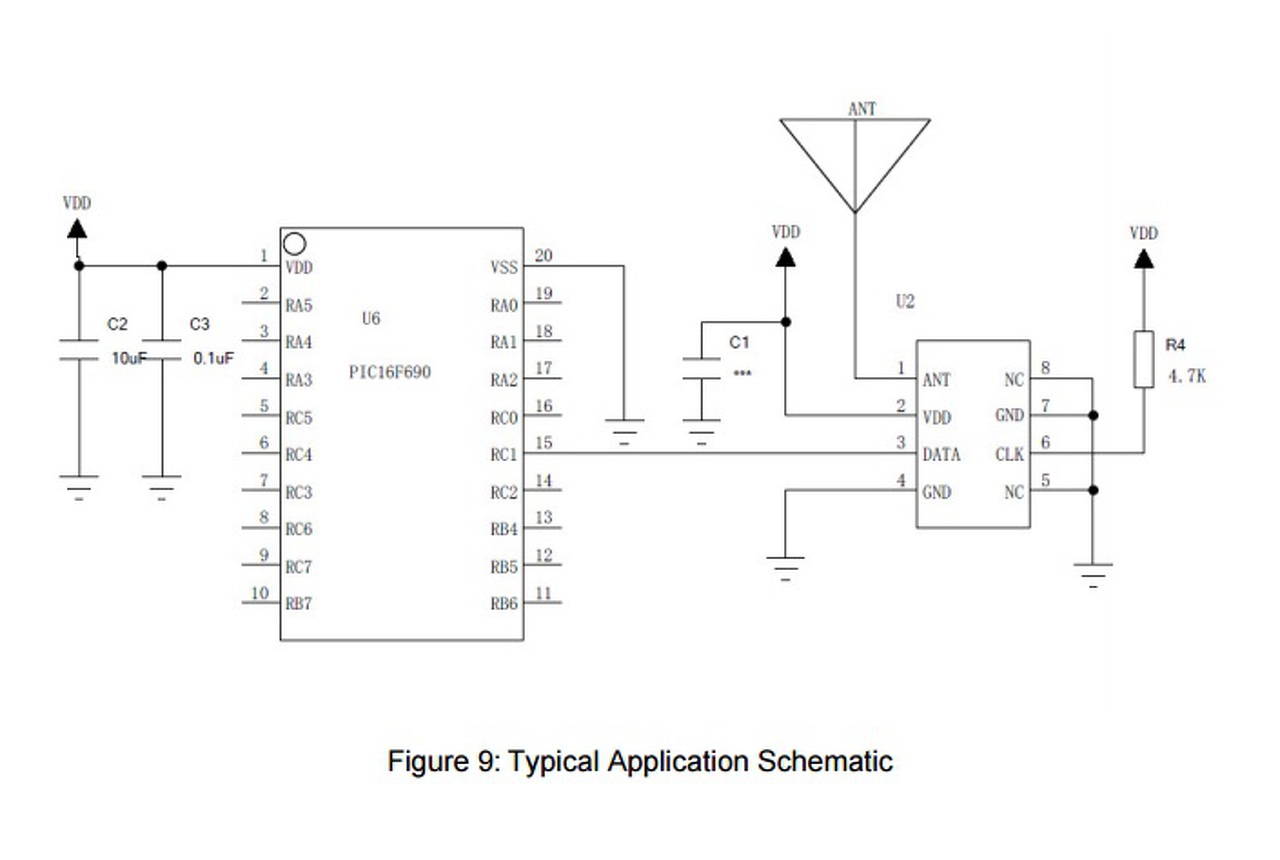 Azért tetszett meg ez az adó-vevő pár, mert mindenképpen a PIC12F1840-el szeretném a rendszert felépíteni, és az adatlap szerint ez az egység csak egy lábat használ. Nem mellékesen nagyon olcsó. Ami nem stimmel nekem, hogy az ábrán jelzett PIC adatlapja szerint ahová kötve van az nem kommunikációs láb. Valamint az sem tiszta, hogy ha ennyi kell a rádióhoz, akkor minek bele SDA, meg CLK.