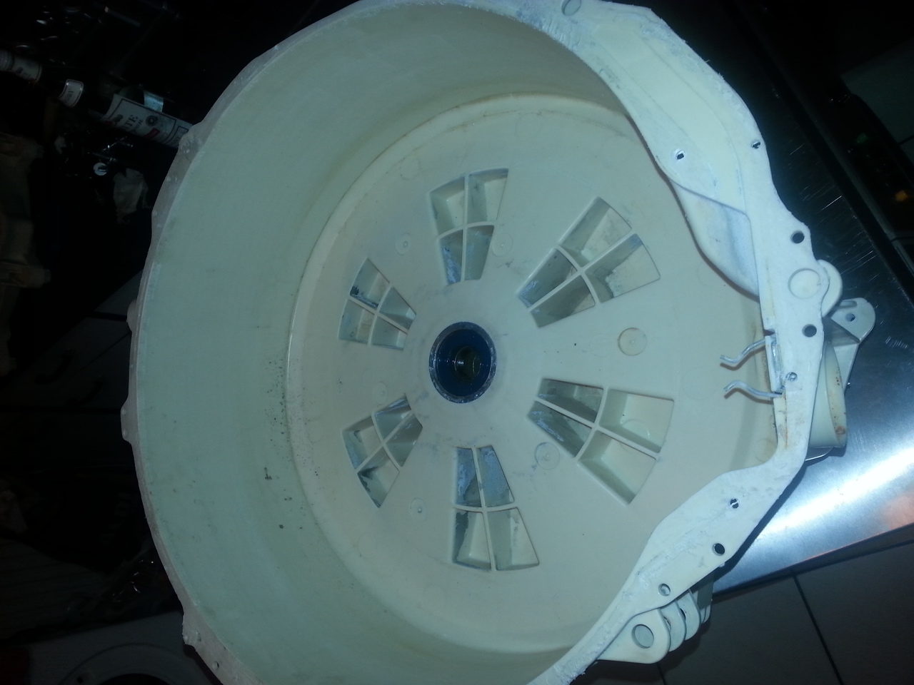 Nem ismerem a konkrét masinát, de mivel az üst műanyagból van, könnyen lehet, hogy csak kivágással jön ki a csapágy és műanyag hegesztéssel lehet az újat beletenni.