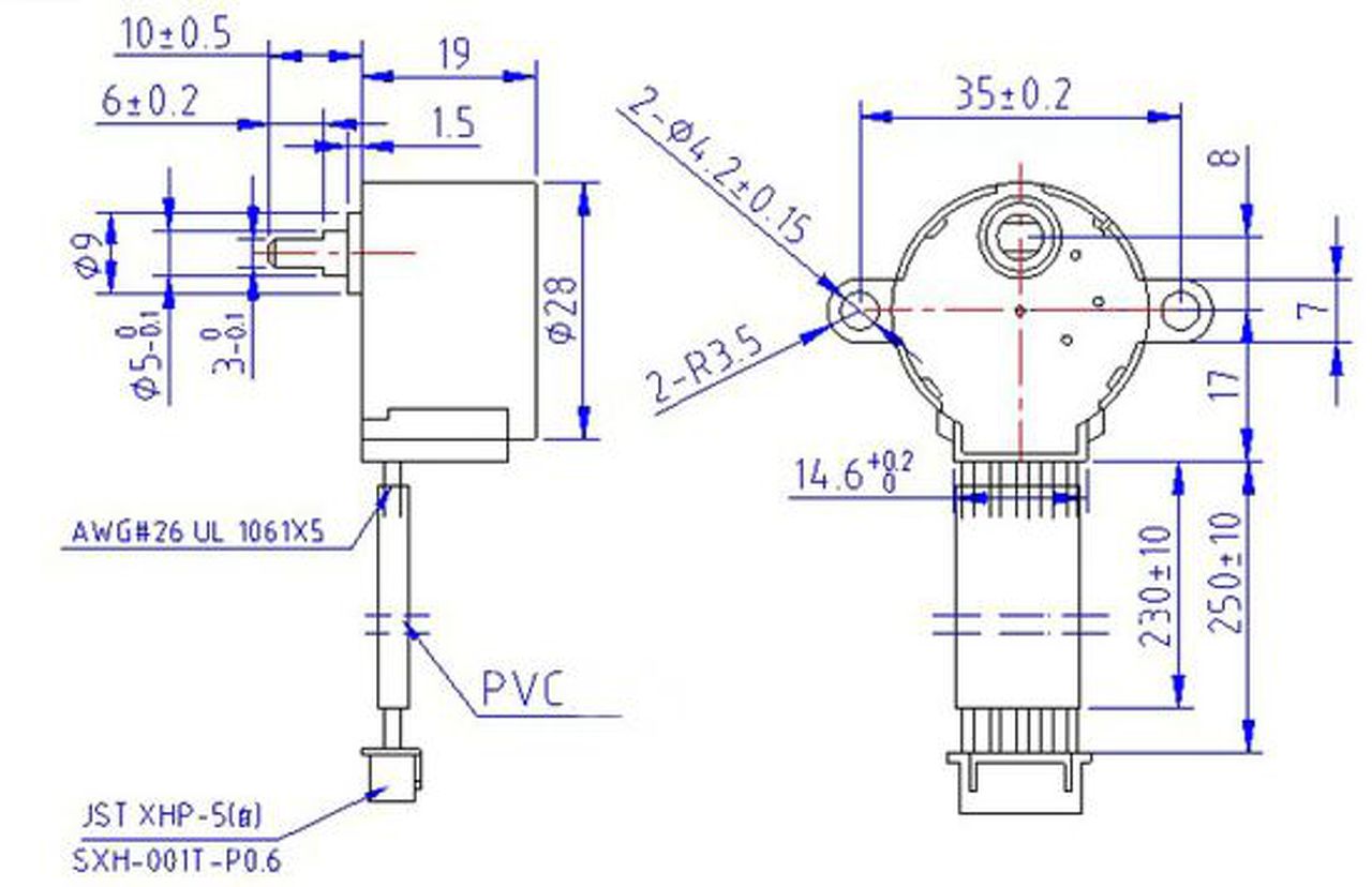 A mellékelt képen láthatóra gondoltam, szerintem nem olyan nagy és az áttételnek köszönhetően 0,7°-ot fordul egy lépésre.