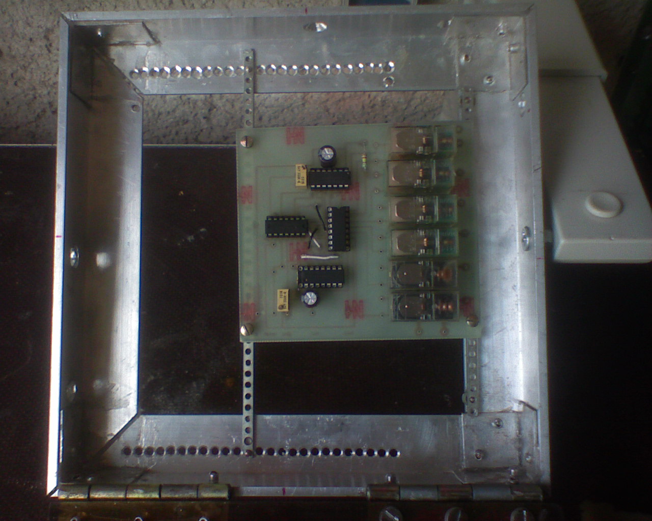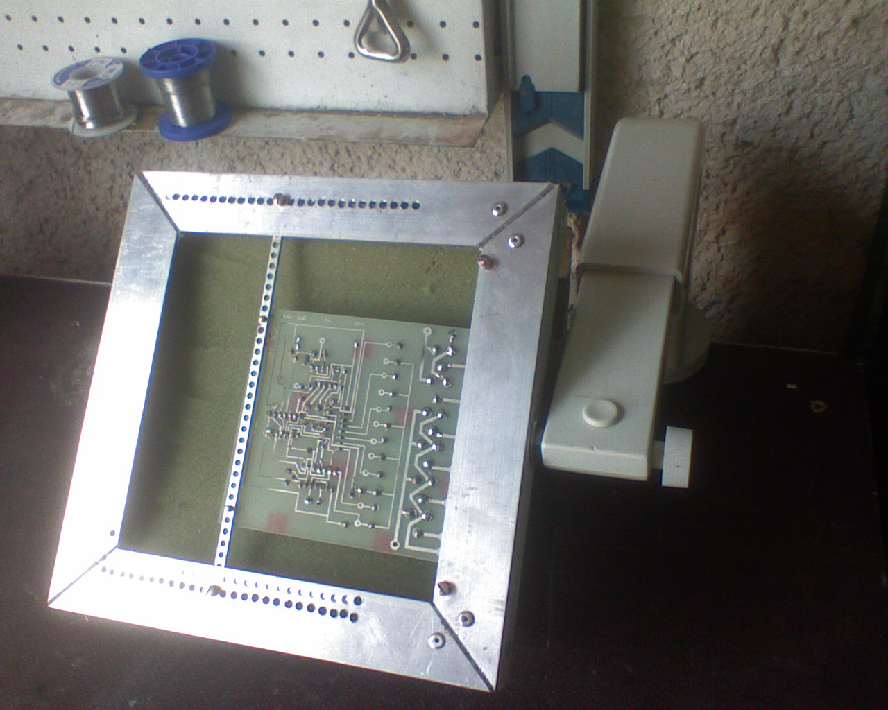 Működése : -1.a kifúrt nyákot belecsavarozom -2.az alkatrészeket bele helyezem -3.szivacsot rakok bele és rácsukom a tetőt -4.átfordítom,forrasztom Itt vannak róla a képek az utolsó kép parkoló állásban mutatja.