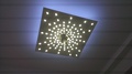80x80cm-es gipszkarton lapon lefelé világít 104db 5730-as led, felfelé pedig ledszalag, kicsit több mint 3m. Távirányítóval szabályozható. Minimumon kb3W, maxon kb 40W-ot vesz fel.