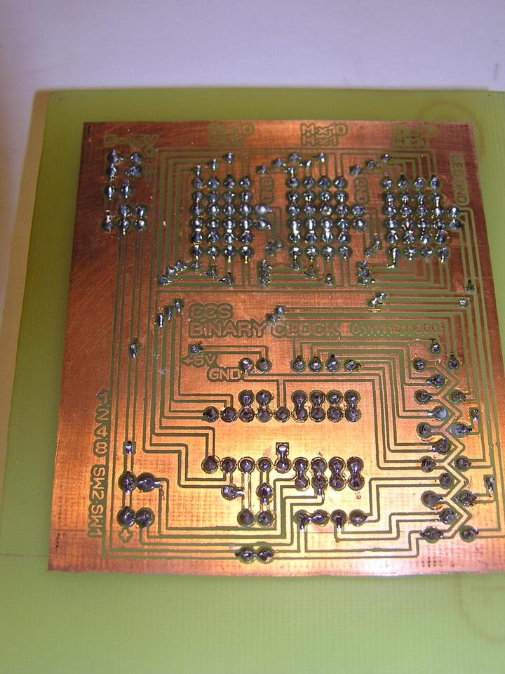 kész van a karácsony óta bedobozalatlan óra. Mert bizony mindíg a dobozolással van a probléma... Egyik nap aztán szert tettem egy tolltartós kvarcórára 200 Ft-ért. Kidobva a működőképes belsejét, végre lett hova raknom a bináris órát. Mivel a panelra raktam egy 5V-os stabilizátort is, így egy telefontöltő trafóval vígan elketyeg. A változtatás annyi az eredetihez képest, hogy 16F627A prociba égettem be a programot. Úgy éreztem memória pazarlás egy 628-as.