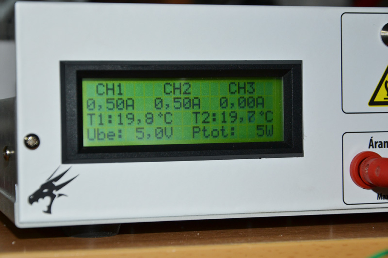 Többször kellett volna, így készítettem egy állandó áramú műterhelést. Határadatok: Max. 15 A, max. 100 V, max. 300 W. A ventilátorok mérete ne tévesszen meg senkit, teljes sebességen 10e -es fordulattal hajtják a levegőt. A "szélcsatorna" kezdetleges, de önerőből ennyire futotta, nem volt kedvem lemezeket hajtatni. Akit érdekel, kapcsolási rajz a mellékletben pdf formátumban. A FET típusa nincs külön jelölve, szinte bármilyen jó bele. Én IRFP 450 -eseket használtam, ez volt itthon. RV3, RV4 és RV5 segítségével beállítható a csatornánkénti max. áram, valamint összehangolhatóak, lévén az alkatrészek gyártási szórása miatt a potik nélkül nem egyenletesen oszlik meg a terhelőáram. A kapcsoláson nincs külön jelölve a forgókapcsoló, amivel egymás után kapcsolhatóak be a nyelőcsatornák. LP2950 helyett természetesen használható bármilyen eszköz, aminek stabil 3 - 5 V-os kimenete van.
