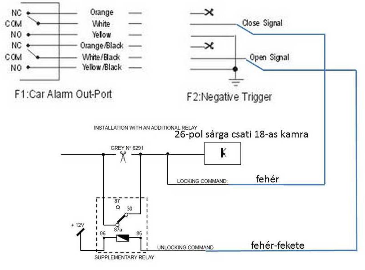 Remélhetőleg nálad is ugyanaz lesz a megoldás: a 26-pol sárga csati 18-as kamrájába menő vezeték felel a zárásért, és a nyitásért is.