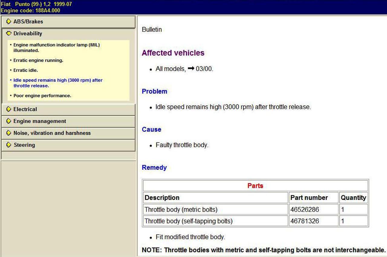 Egy Fiat Punto 1.2 8V benzin (44kW) 2004-es évj. gépkocsiról lenne szó, melynek hibájára tavaly május óta egy márkaszerviz és egy független műhely több órányi munkával sem tud gyógyírt találni. A probléma a következő: alapjáraton a fordulatszám folyamatosan ingadozik. A hiba kizárólag üzemmeleg motornál jelentkezik, egyedül akkor stabil az alapjárat ha valamilyen nagyobb elektromos fogyasztó pl. a világítás vagy a hűtőventilátor üzemel. Amikor beindítom és tart a bemelegedési fázis akkor sem teljesen stabil, de korántsem olyan módon ingadozik mint üzemmeleg állapotban.