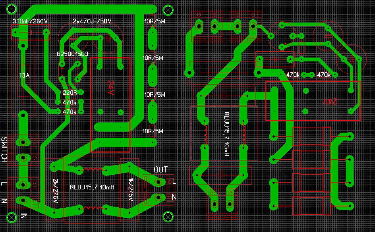 Készitettem egy nyák tervet az oldalon található lágyindító áramkörhöz, de kiegészítettem egy kicsit 2 kondival és egy 2x10mH induktivitással. Az egyik tápegységemben volt benne, gondolom a hálózat szűrésében vehet részt, mint egy EMI filter. Ellenőriznétek hogy jó-e? Előre is köszi!