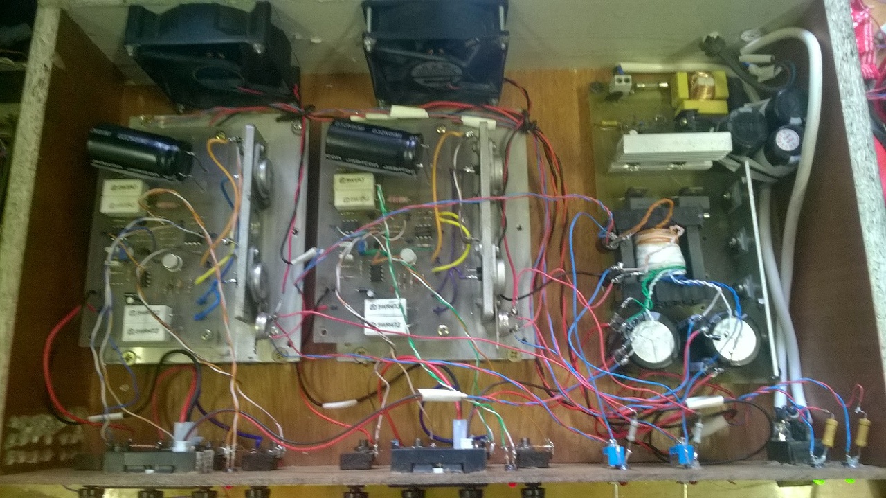 Igaz, nem lenne annyira szerelhető (ahogy elnézem pedig, párszor bele-bele kell majd nyúlni) de én megfordítanám az egészet, hogy a borda legyen felfelé. Sokkal jobb lenne a hűtés. A vezetékezésen meg a famunkán van még mit gyakorolni.