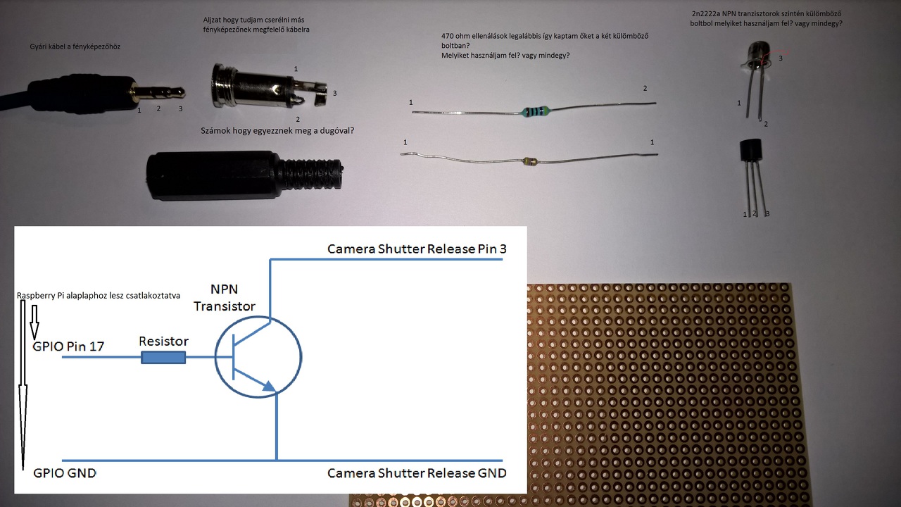 Raspberry Pi alaplappal lesz össze kötve ez csak az exponálást végzi a kábel. Tehát egyik vége a Pi Gpio csatlakozóira lesz kötve a másik vége a fényképezőgép re Remélem így már érthető. Leg fontosabb az lenne hogyan forrasszam össze amiket a képeken látsz. Mivel a rajzon még csak el is mennék csak magán a tranzisztoron pl fogalmam sincsen hogy melyik láb melyik. A hozzászólás módosítva: Nov 6, 2015