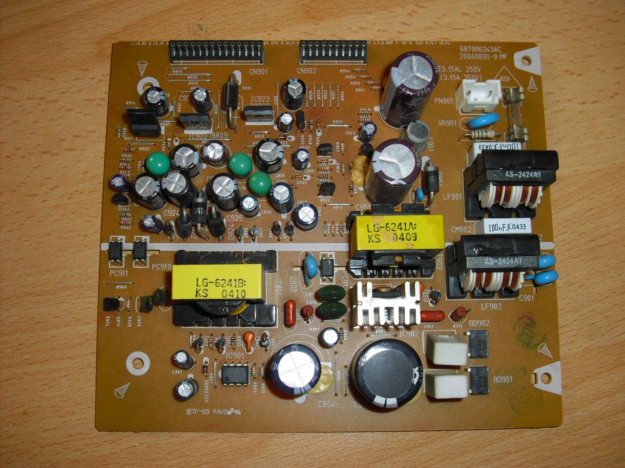 vagy inkább egy szépen felfúvódott elko, netán egy "füstösebb" ellenállás ... különösen a tápegységben. Bőven elég, ha a lejátszórész nem kap áramot, a vezérlésnek máris annyi ... Igy néz ki nagyjából a tápjuk ... Bár ez egy Toshibáé, a felépítése mindegyiknek ehhez hasonló.
