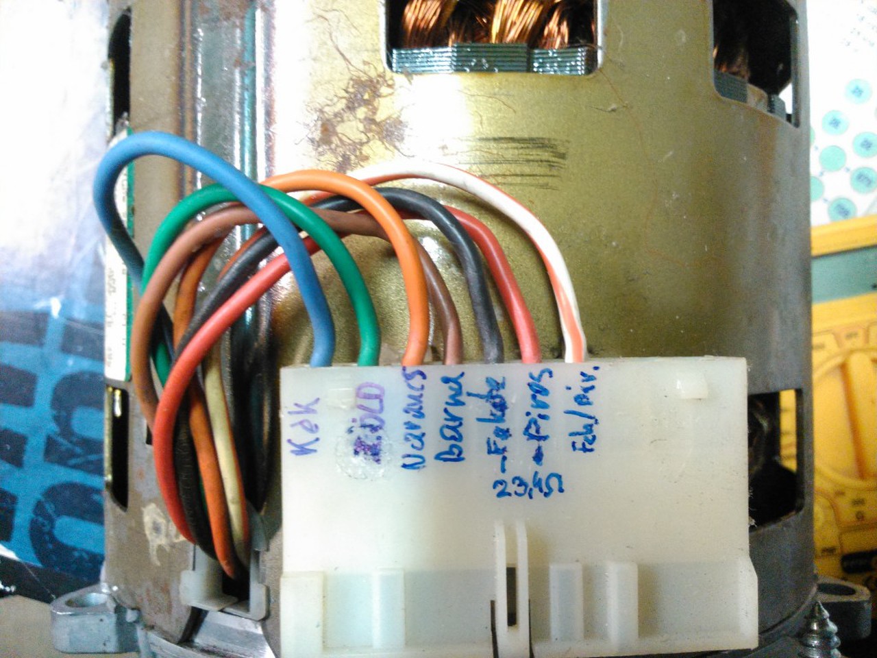 Sziasztok segítség kellene egy mosógép motor bekötéséhez. A motoron 6 kivezetés van ebből az egyik zöld-sárga gondolom ez a test. Küldök képet. Köszi.