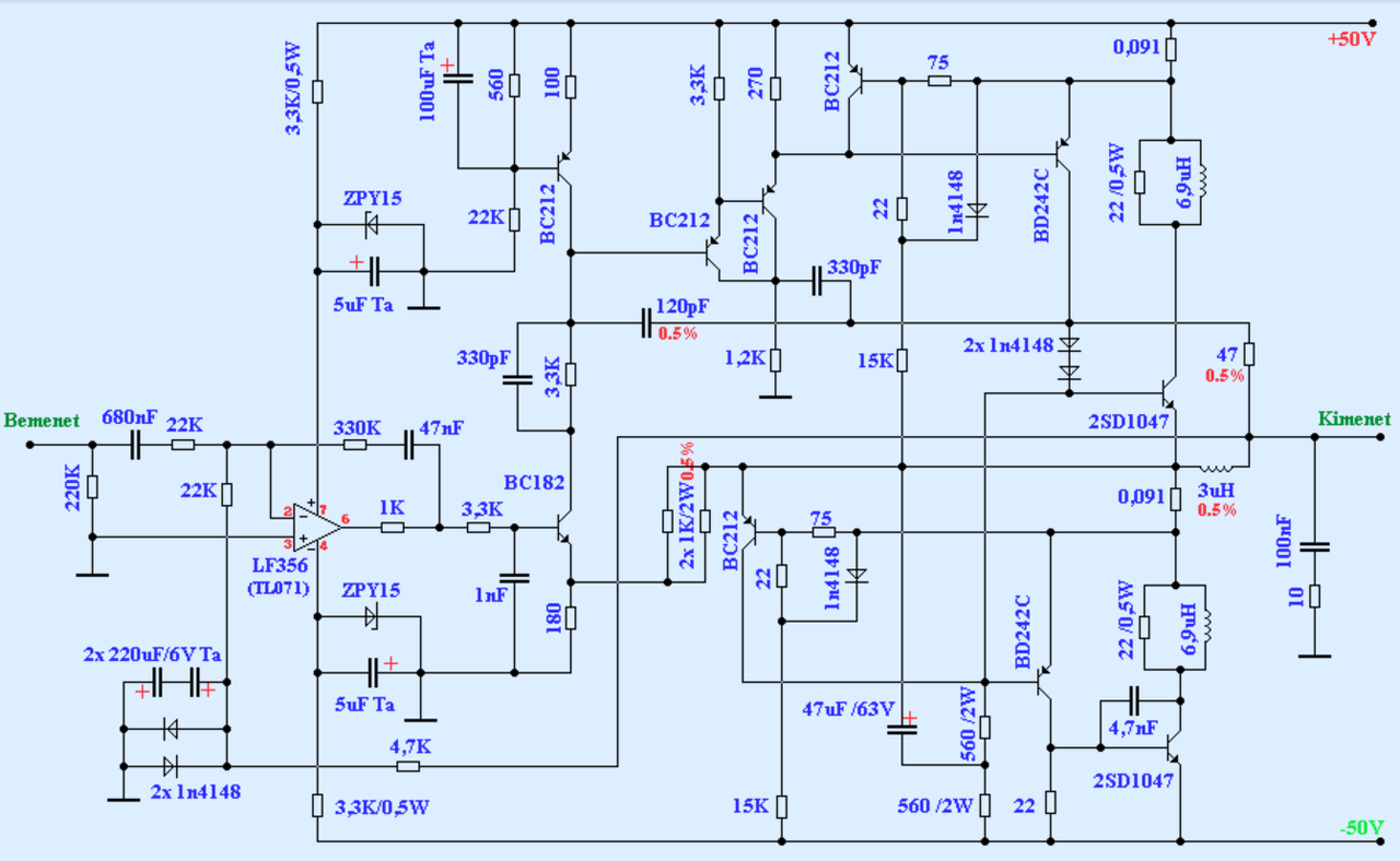 A tranzisztorok helyén állhatnak helyettesítő típusok, nem zavaró.