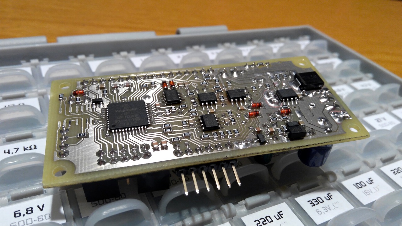 Közben elkészült a digitális labortápom következő prototípusa is, ez csupán egy délutánomba került. Bár pár alkatrész még hiányzik belőle. Az első prototípus rengeteg sebből vérzett, ez viszont már sokkal jobb lesz. Annál még 1206 tokozású ellenállásokat és kondikat használtam, ezen viszont már 0805-ök vannak. Ez a tokozás szerintem sokkal jobb, rengeteg helyet meg lehet vele spórolni, miközben a 1206-hoz képest tulajdonképpen nem igényel lényegesen precízebb forrasztási munkát. A Samsungnál néhány éve forrasztgattam 0201 tokokat is, na az már tényleg elég pici.