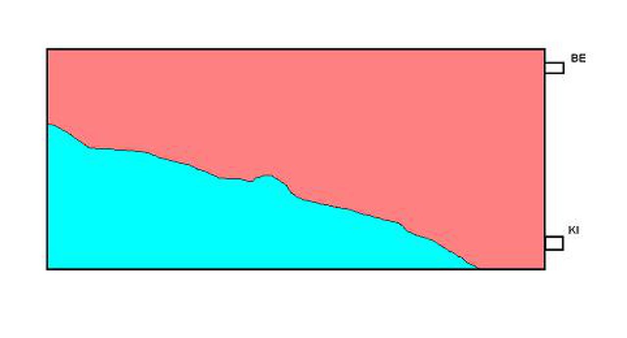 Van egy kis problémánk a fűtéssel. Nem működik rendesen a konyhai radiátorunk (régebbi panelradiátor). Mellékelek egy ábrát, hogy hogyan gondolom. A kékkel jelölt rész nem fűt, a bal alsó sarok teljesen hideg. Ha valaki tudja mitől lehet és hogy hogyan lehetne megoldani kérem szóljon. Elég rossz, hogy hiába tüzelünk a kazánban, a konyhában csak 16C° van, pedig a kazánból elfolyó víz 60-70C°.