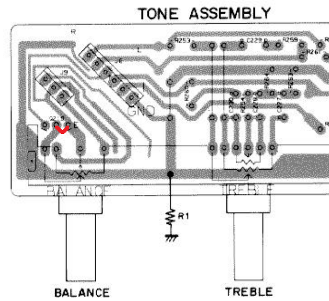 A balansz poti lehet akár mechanikai hibás is. Mielőtt bontani kezdenél, kösd össze Q219 kollektor-emitter lábait a mellékelt ábra szerint és próbáld ki a hatását.