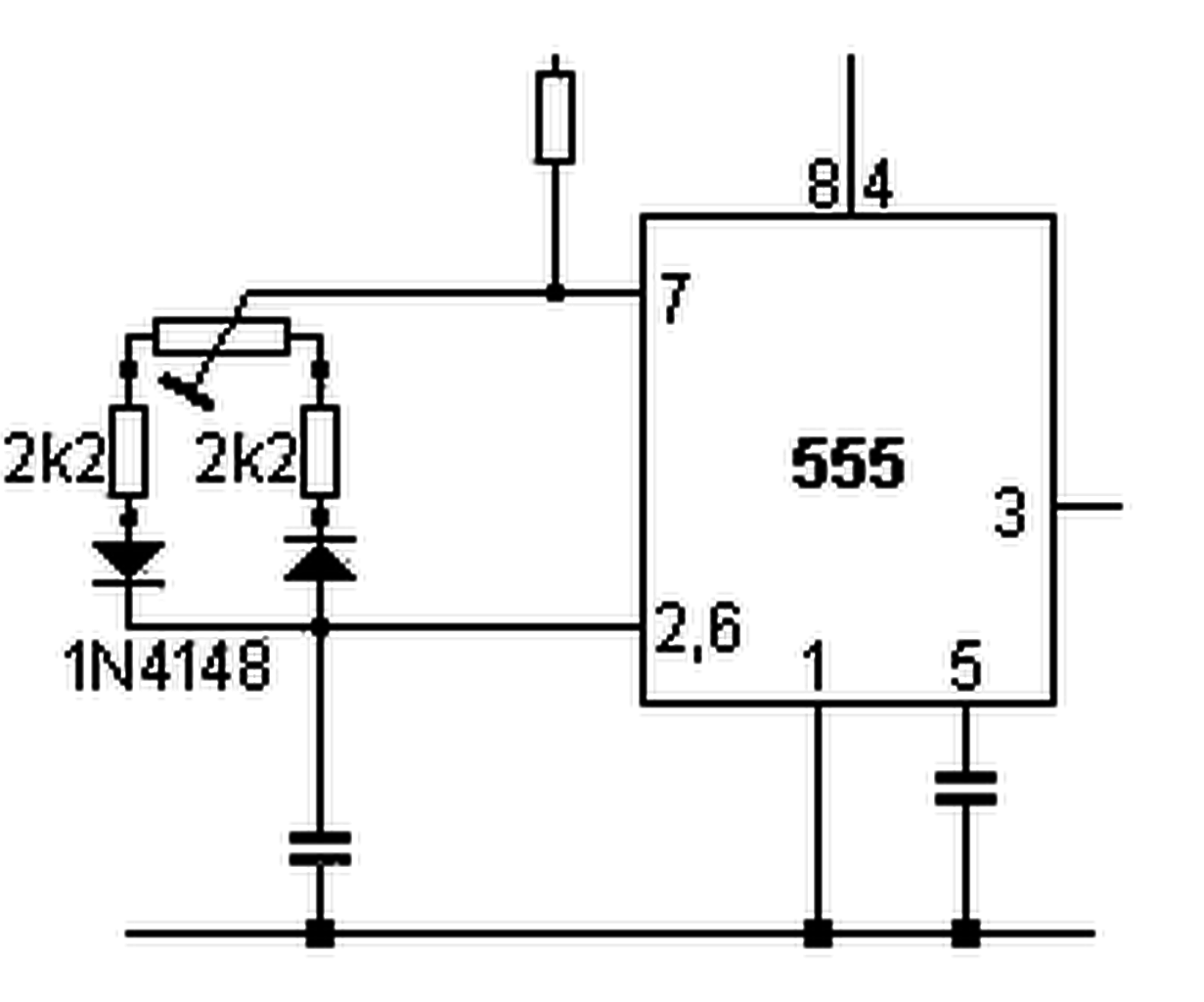 Időközben én is aludtam rá egyet. Sajnos a potméter egy elég gyenge láncszem. Ezért szerettem volna a meglévő huzalpotira építeni, de sajnos akárhogyan nézem a 2k nem elegendő az 555-el. Nem tudom sem maxra, sem minimumra teljesen fel illetve lehúzni a vezérlést. Újfent körülnéztem és az alábbi módosításra jutottam (kép). Itt a potméter köre át lett szabva - kénytelen vagyok elismerni, hogy a 100k az arányok miatt egyszerűen kell ebbe a körbe. R1 1k minimum követelmény, az osztó aránya viszont nagy viszonyszámú kell legyen. Így sokkal szélesebb a kivezérelhetőség. Nyilván át fogom erre rajzolni az iméntit, ha kapok némi véleményt erről is.