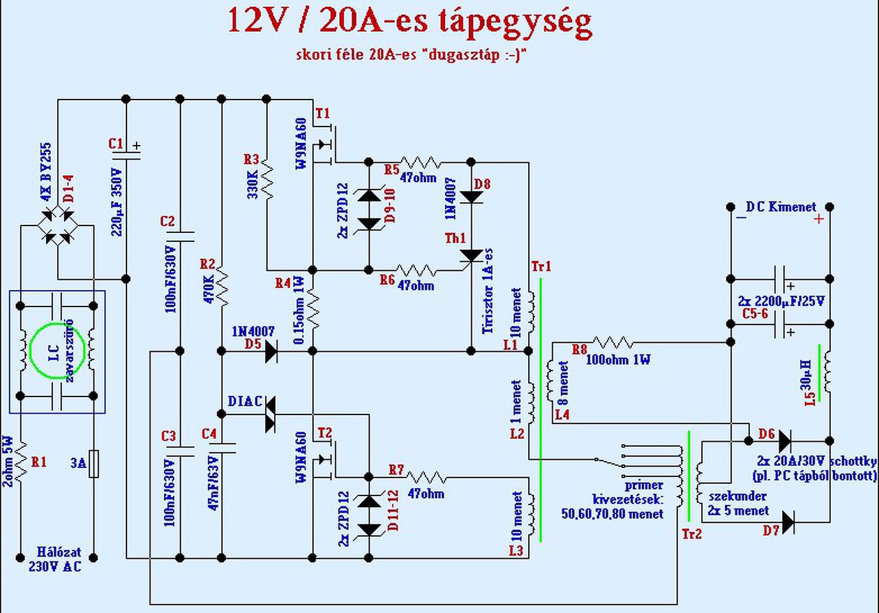 Az alábbi linken található kapcsoló üzemű dvd táppal lenne gondom (Kép): Bővebben: Link A táp lelke ez az IC: Bővebben: Link Adatlap alapján a nagyfesz rész újra lett építve a kimeneteken meg is vannak a tápok stabilan (-12v, +12v, -5v, +5v) Különösebb gond nem is lenne bár még fogyasztót nem kötöttem rá valamiért kattog a trafó. Nagyon halkan kattog viszont sikerült felvennem alább csatolom (VLC vel lejátszható). Mitől lehet ez? Gondoltam a D1,D2 dióda párra de csere után se változott pedig direkt hasonló dvd trafó hibás tápjából vettem ki őket. Ezt leszámítva mi okozhatja ezt? Válaszokat előre is köszönöm! (U.I.: Kapcsolási rajzot sehol de még csak egy szerviz könyvet se találtam a dvd hez pedig elektrotanyán is kerestem. A dvd típusa: A-one DVD-M02, fogyasztót pedig azért nem raktam rá mert a dvd alaplapja halott de gondoltam a tápot megmentem belőle kis teljesítményű labor tápnak. Az IC adatlapja szerint 17W ot bír ami nekem bőven elég kis teljesítményen.) A hozzászólás módosítva: Nov 23, 2015
