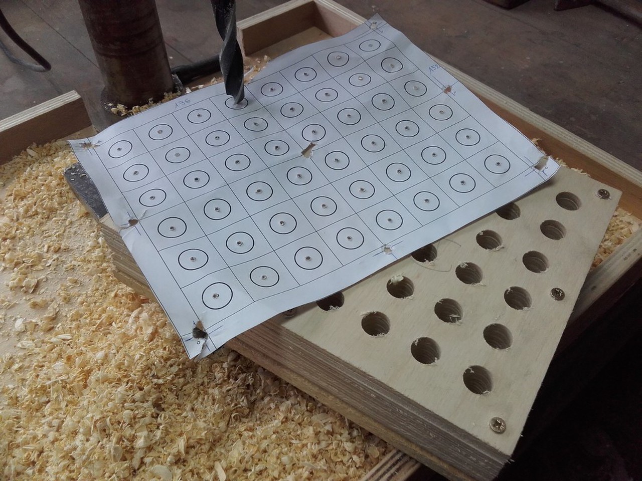 Ez a mű is csak akkor lát elektronikát, mikor belerakom a hozzá való alkatrészeket. Tehát, ez egy 4mm-es rétegelt lemezből készült, SMD alkatrészek tárolására (műanyag 11x70mm-es RIA tesztcső-ben) alkalmas tároló eszköz. 1-1 tárolóban, 48db tesztcső fér el.
