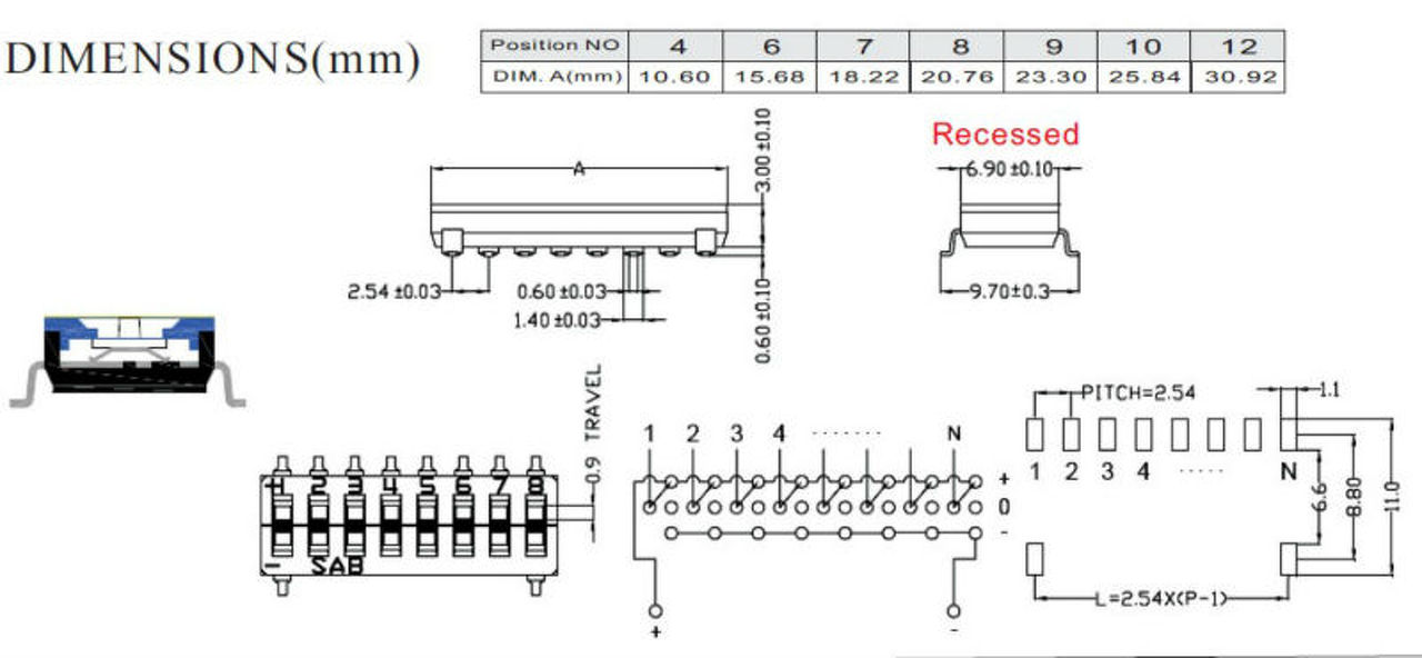 Létezik három állapotú DIP kapcsoló, de szerintem neked nem ilyen kell. Itt közös a "+" és a "-".