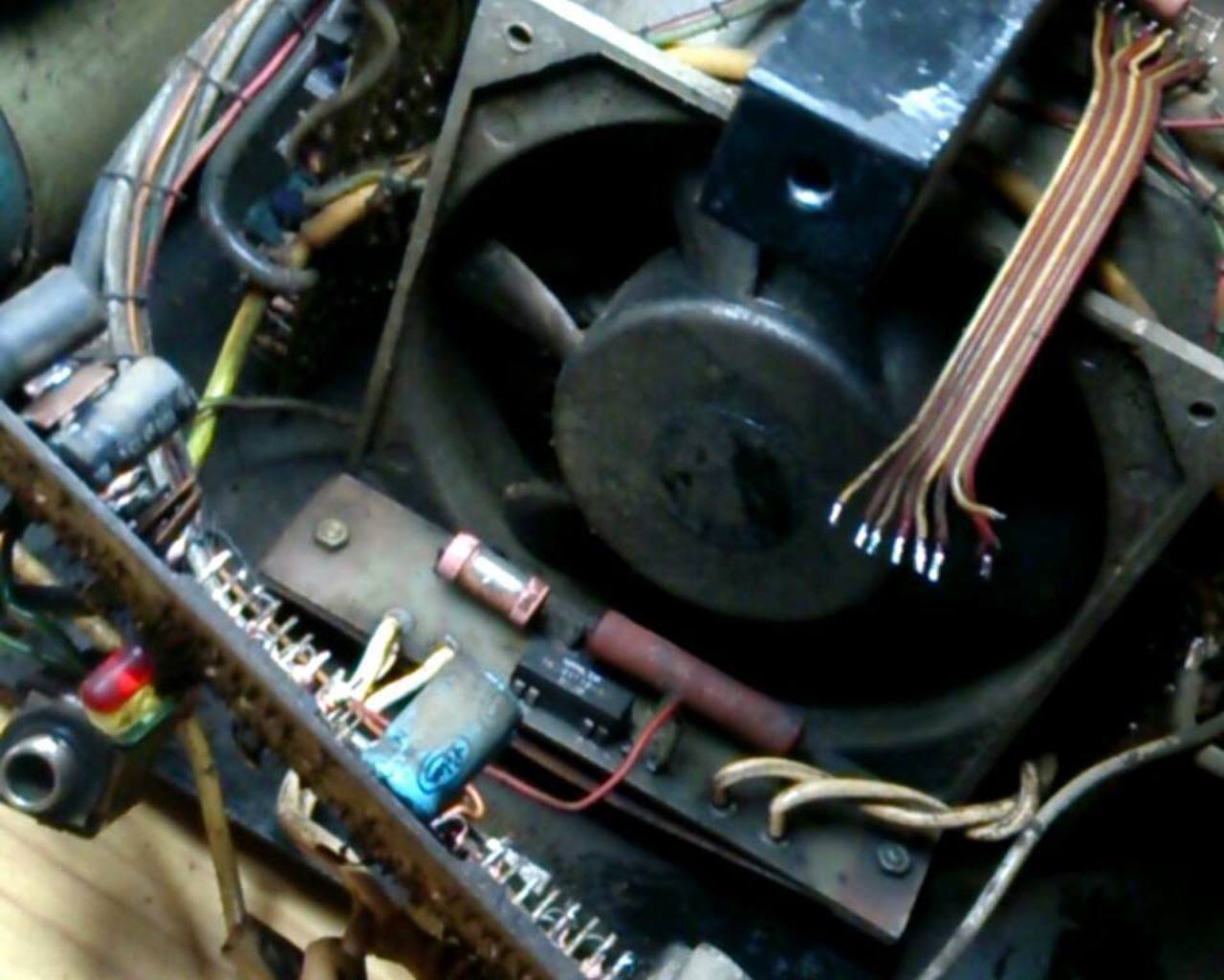 Megjelent a hűtőbordán az egyik tápfeszültség, mert a tranzisztor alatt levő szigetelés nem megfelelő, kilágyult/stb. Így a GND-re lett kötve 10ohm-on keresztül az alváz, ami pedig a bordáról megkapja a tápfeszültséget.