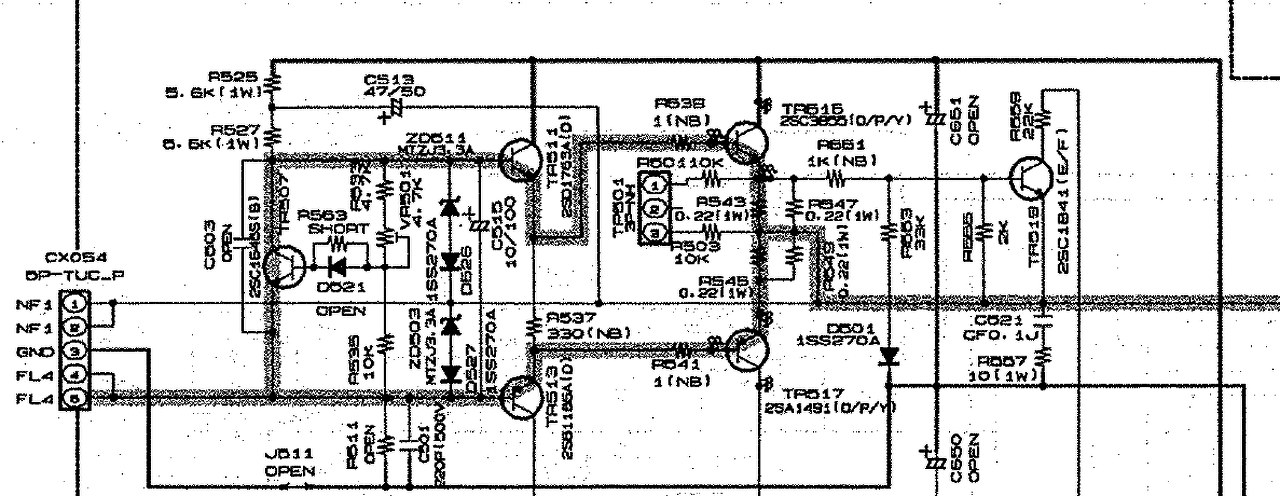 Természetesen letekertem a trimmert, és a bekapcsolás pillanatában mintha reagálna (addig amig fel nem éled a proci akkor elindul az áram és kikapcsol a védelem). Azt a 330 ohmos ellenállást mértem nem volt hibás, csak a 0,22 ohmosak mentek el valamint a 538 (1 ohm) valamint a figyelö 551 (1 kOhmj ment el. Azokat mind kicseréltemösszehasonlitva a szomszéd csatornával eddig még különbséget hidegen nem láttam. Igaz ott vannak azok a zenerek azokat hidegen az áramkörben nehéz bemérni. Ki fog kelleni forrasztanom mindent.