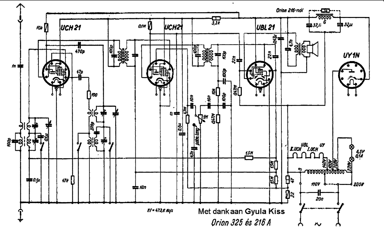 Az UY1N 50V-os fűtésű egyenirányító cső,az UCH21-esek 20V-al,még a végpentóda UBL21 55V-al fűt. Ha ezeket a feszültségeket méred,mikor be van kapcsolva a trafó és fűtenek a csövek,akkor már jó nyomon jársz.