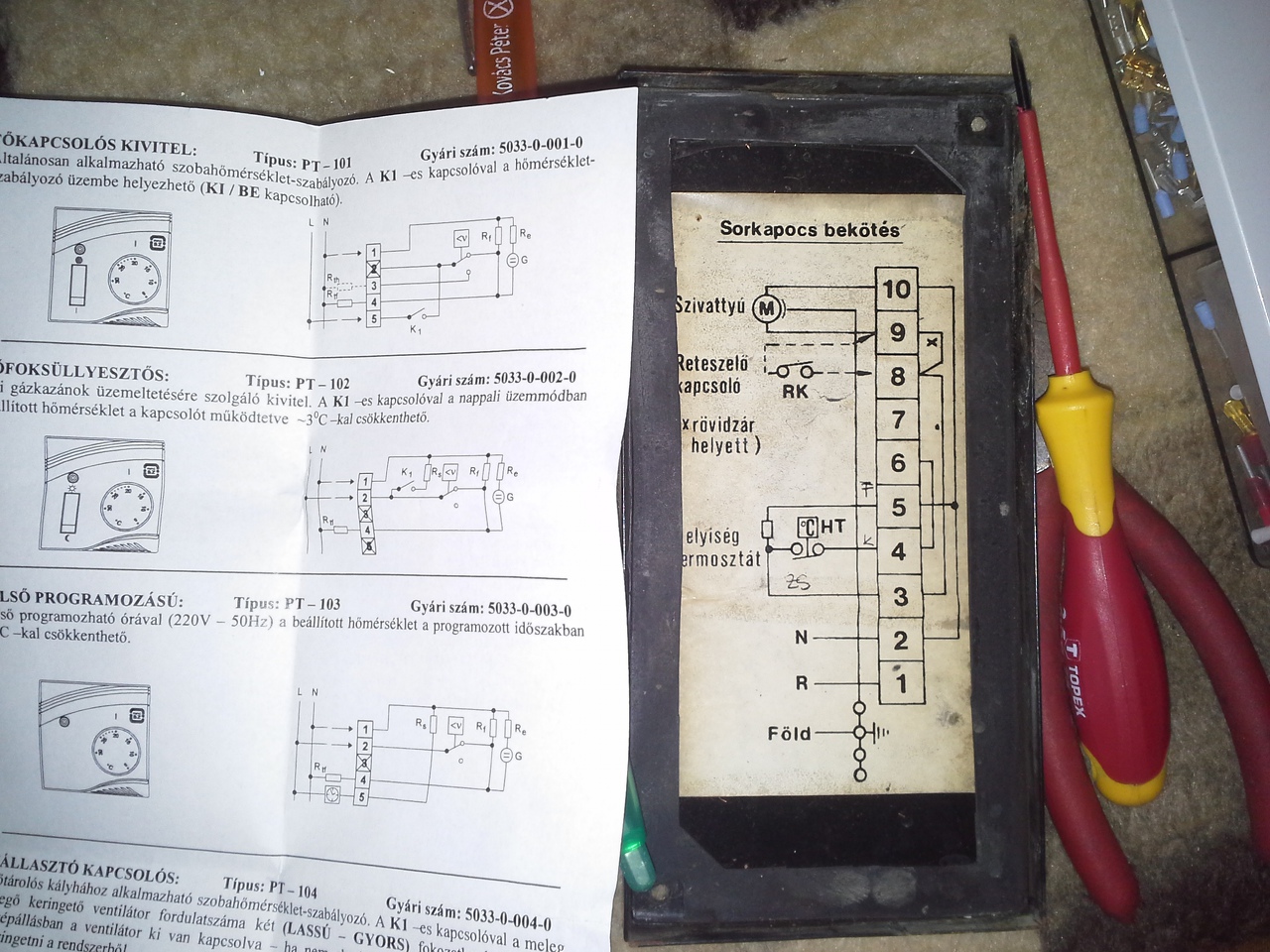 )) .Nézd én nem akarom minden áron lecserélni a régit ,de egy próbát megér pár napig hogy az újjal hogy viselkedik a fűtés .+ A terv az hogyha tudom mit hova kell kötni ,abból a szobából átviszem a vezetéket a nappaliba ki ((csak 1 falat kell átfúrnom )) és oda fogom felszerelni a termosztátot .Ha az új nem vállik be visszarakom a régit ..... meglátjuk
