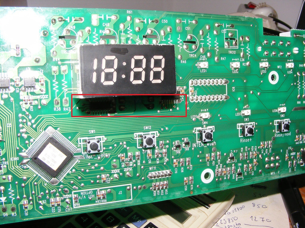 IC9, IC5 is az? Azt is sípold át. Mindent ami a 7szegmens körül van át kell nézni. A triakokon kívül, az most nem érdekes.