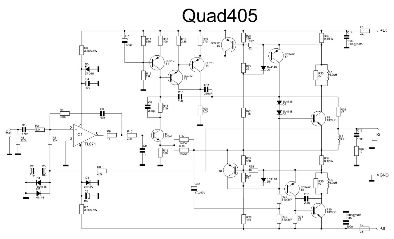 Épített már valaki +/-30V környékére Quad 405- erősítőt?