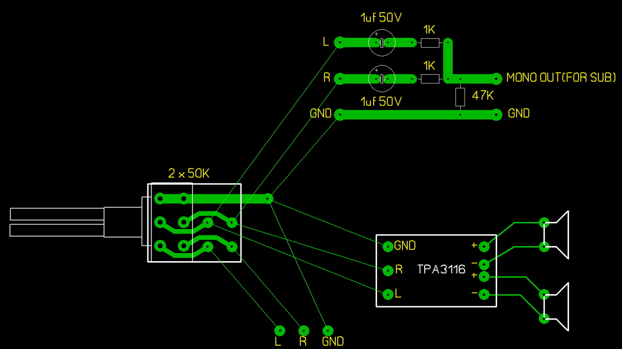Összeraktam egyik rokonnak egy kis erősítőt és problémám akadt vele. Tpa3116 erősítő 24V kapcsoló üzemű táppal, a hangerőt állítva, a kezdő és végállás között zajt bocsát ki. A tápban 1000Uf elektrolit kondenzátor + 220nf párhuzamba. Az erősítő hangja egyébként jó. Mellékelem a huzalozást is, a hang útja mindenhol árnyékolt vezetékkel van huzalozva. Mivel tudnám ezt a zúgást megszüntetni? A hozzászólás módosítva: Dec 21, 2015
