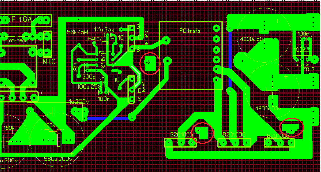 A Nixie táp rajzán az 1N4936 (400V, 200ns) diódát érdemes kicserélni UF4007 (1000V, 75ns), SF18 (600V, 35ns) -re.