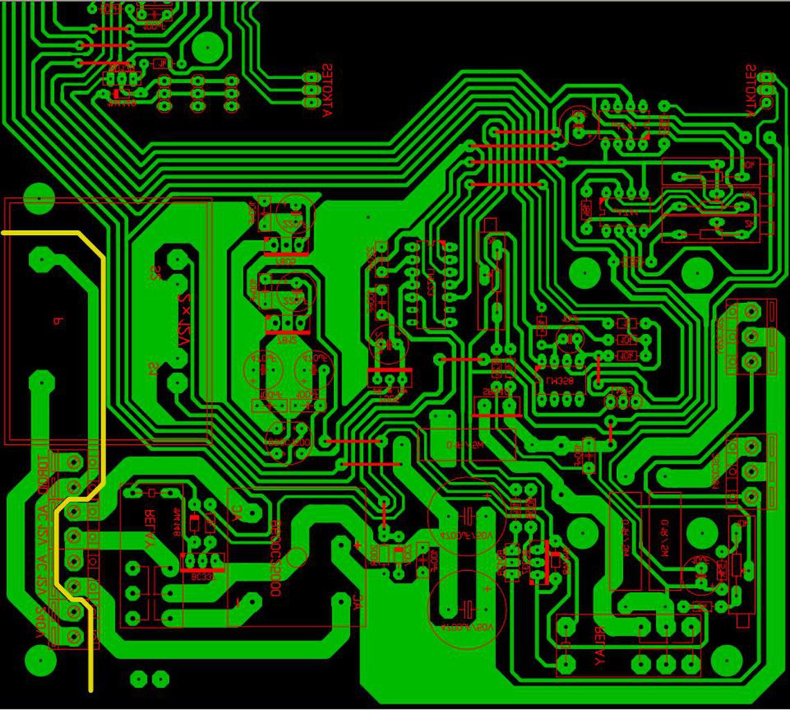 Nekem a bal felső sarokban azok a vonalvezetések a felesleges csücskökkel nem tetszenek és kicsit túl hosszúnak találtam néhány vonalat. Szerintem bőven lehetne még optimalizálni és akkor felszabadulhatna a hely a szigetelési távolságnak is.