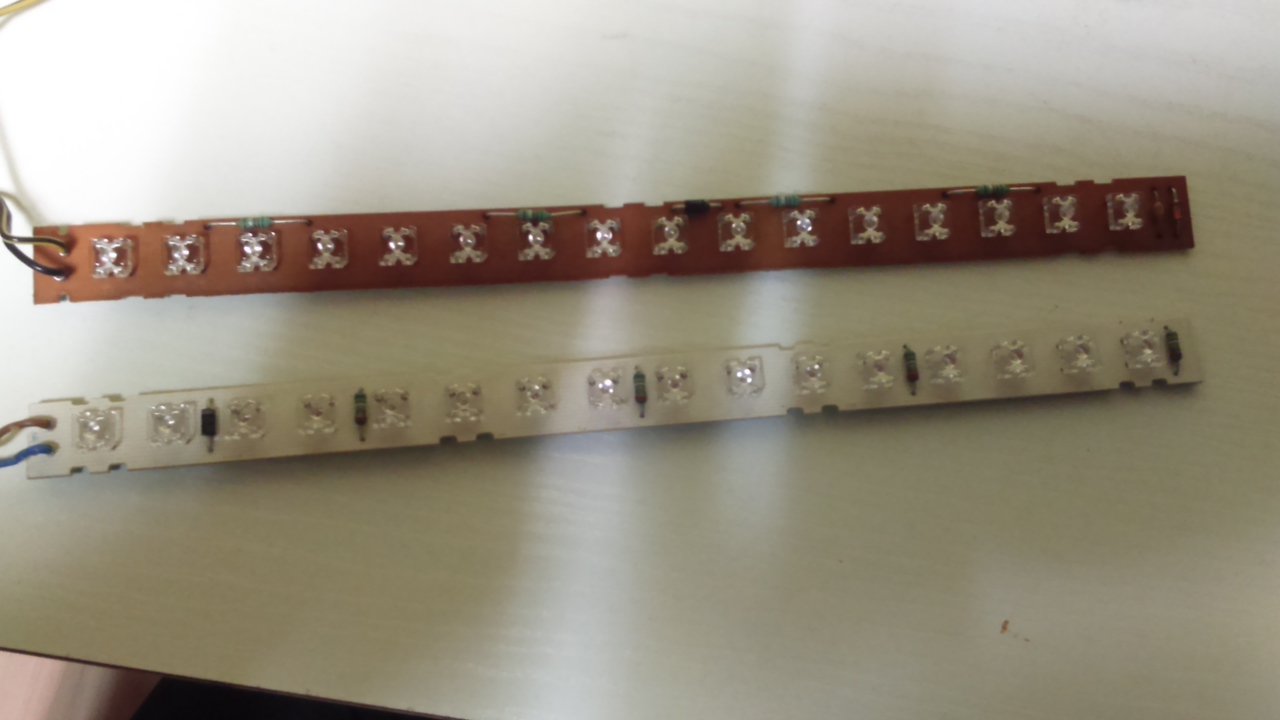 Üdv! Az alsó szerintem nem fog működni. Ahogy látom a ledek négyesével párhuzamosan, majd ezek sorba vannak kötve. Ha levágod, akkor ellenállással kell helyettesíteni a hiányzó ledeket, különben nem világít. A másikat nem látni, de gondolom hasonló a kötése.