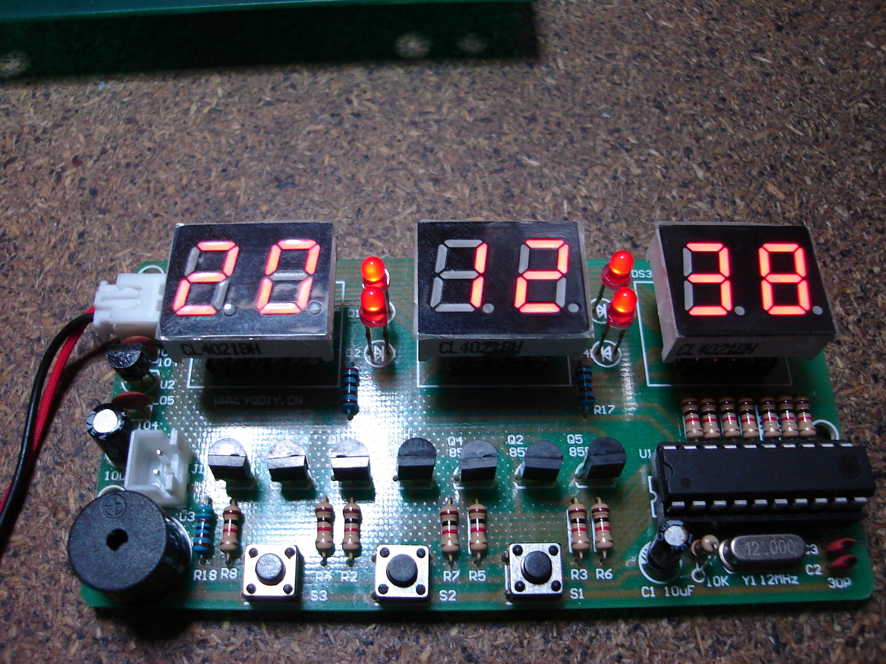 Megepitettem Vicsys LED orajat , nagy kijelzokkel es kissebb valtozasokkal. A kijelzoket, es az 555-os ic-t egy DC-DC konverter taplalja, a PIC-et egy 7805. Amit meg beleepitek az egy rele, ami a halozati tapellatas megszunesevel tovabbra is taplalja a PIC-et egy kulso aramforrasrol, hogy ne felejtse el a bealitott idot.