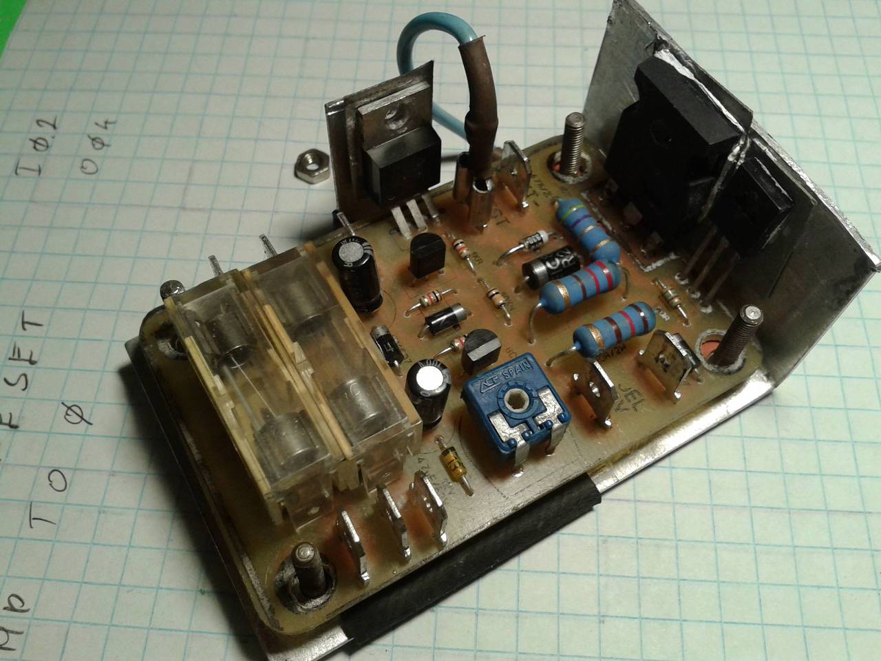 A szabályzásért egy egyszerűbb általam írt algoritmus felel Arduinoval és egy áteresztő FET-tel.