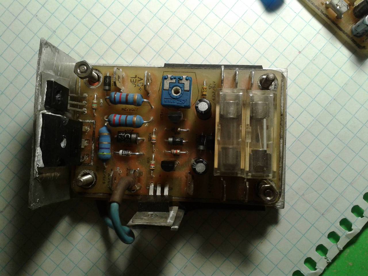 A tápegység 1db ~18VA×10VAC trafó, T200mA bizti, kapcsoló. a visszajelzést-háttérvilágitást 2db antiparallel kötött warmwhite 3528-as LED szolgáltatja (primer ~85mA áramával 1/4W).