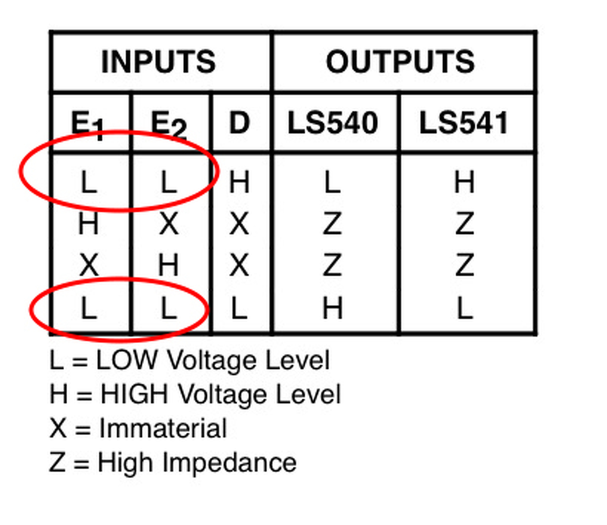 Értem én, de az igazságtáblázatban (74LS541) nincs H;H állapot. A pirossal bekarikázott részek az érdekesek.