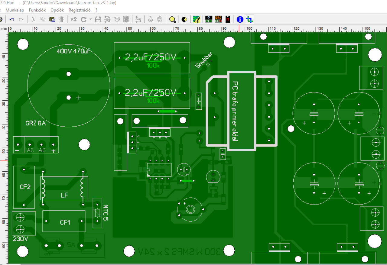 Jaj, és talán annyival jobb lesz ez a panel, hogy rendesen mennek a vezetősávok arra amerre kell a megfogadott dolgok szerint. Egy próbát megér, mert kíváncsi leszek erre az áramvédelemre is. Valamint egy soros tekercset kap és hozzá nézek egy kondit a rezonáns üzemhez.