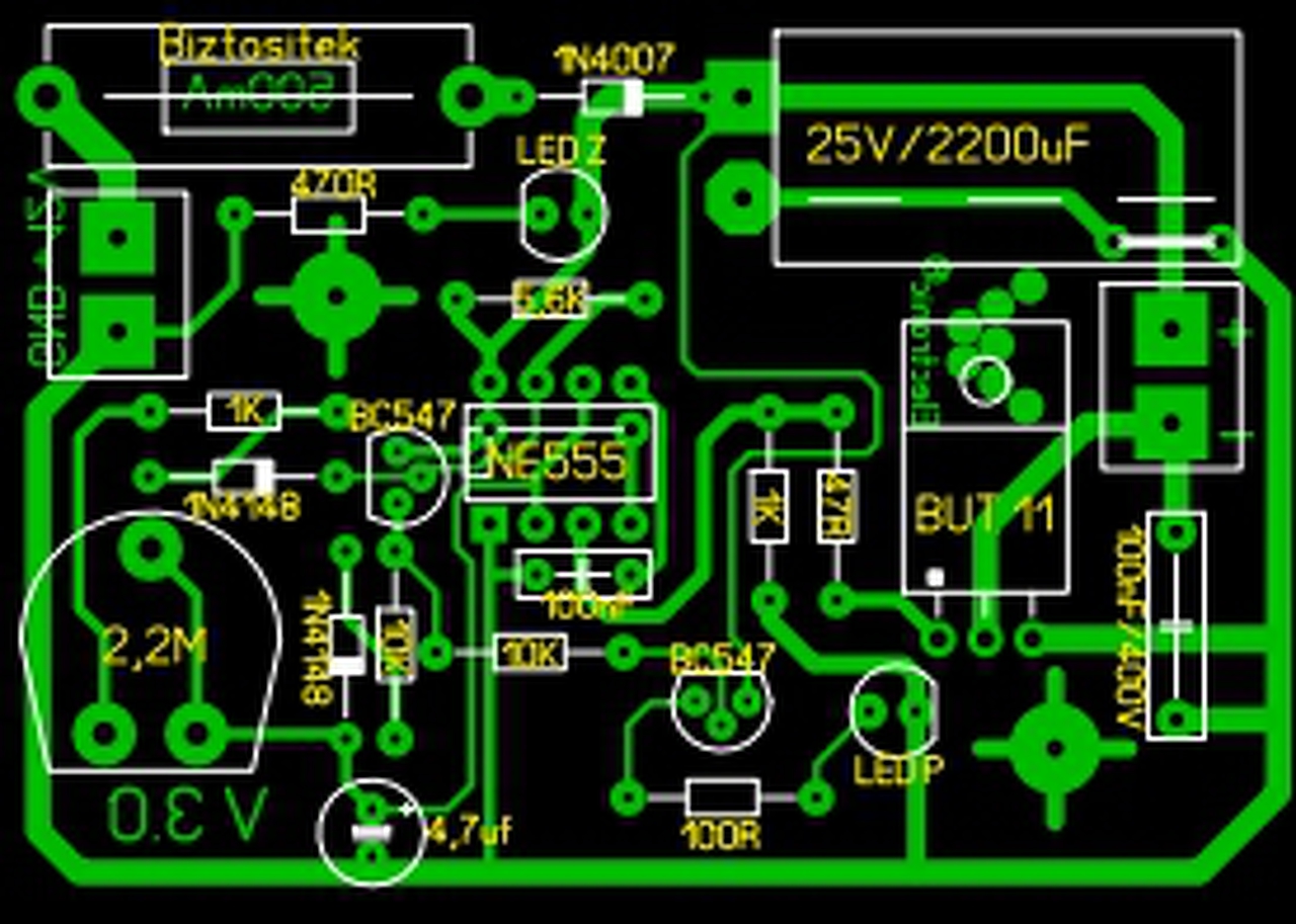 Szeretném megépíteni a BSS-en talált inverteres villanypásztort! Bővebben: Link az a kérdésem, hogy találtam itt a honlapon egy fetes nyáktervet, amit gondoltam visszaalakítok, hogy tranyo legyen a kapcsolásban. Az érdekelne, hogy a BSS honlapján látható meghajtás a tranyónak megfelel-e vagy esetleg érdemes egy lezáró ellenállást tenni a bázis és az emitter közé (1K) úgy ahogy a nyákterven is van? Továbbá a diac bekapcsolását szabályozó poti, ellenállás kombót hogy kellene módosítani, hogy szépen használható legyen, de ne keljen ilyen nagy értékű poti az áramkörbe (sajnos nem találok a közelben levő üzletekben megfelelőt). :S