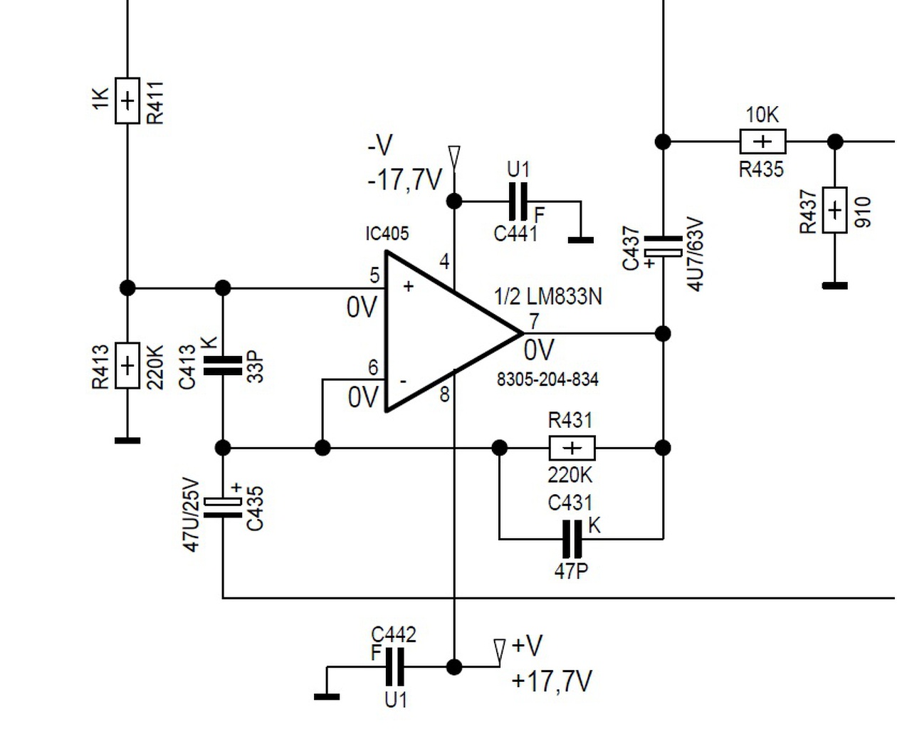 Üdv! Egy grundig erősítőt tuningolok és az eredeti műveleti erősítőt ami LM833N cseréltem OPA2134PA -ra, mert ez volt itthon ezzel kevesebb is lett a zaja és a hangja is sokkal jobb aztán rendeltem egy LME49720HA műveleti erősítőt bele tettem és a háttérzaj eléggé felerősödött és a közép magas tartományban a dinamika csúcsoknál kisebb torzítást véltem felfedezni füllel, és arra gondoltam hogy túl nagyot erősít ez a műveleti és kéne változtatni a gyári beállításokon. Ebben kérnék kis segítséget én ahogy számoltam 2x erősítést csinál R413,R431 ellenállásokkal ha R413 értékét növelem akkor elvileg csökken az erősítés. Ha mégsem akkor javítsatok ki. Köszi a válaszokat.