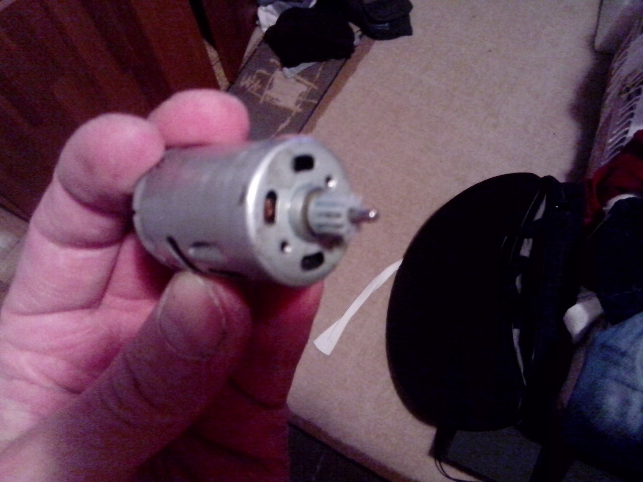 Egy fém tengely egy műanyag házban forog, és a tengelynek is csak az egyik fele van megtámasztva.