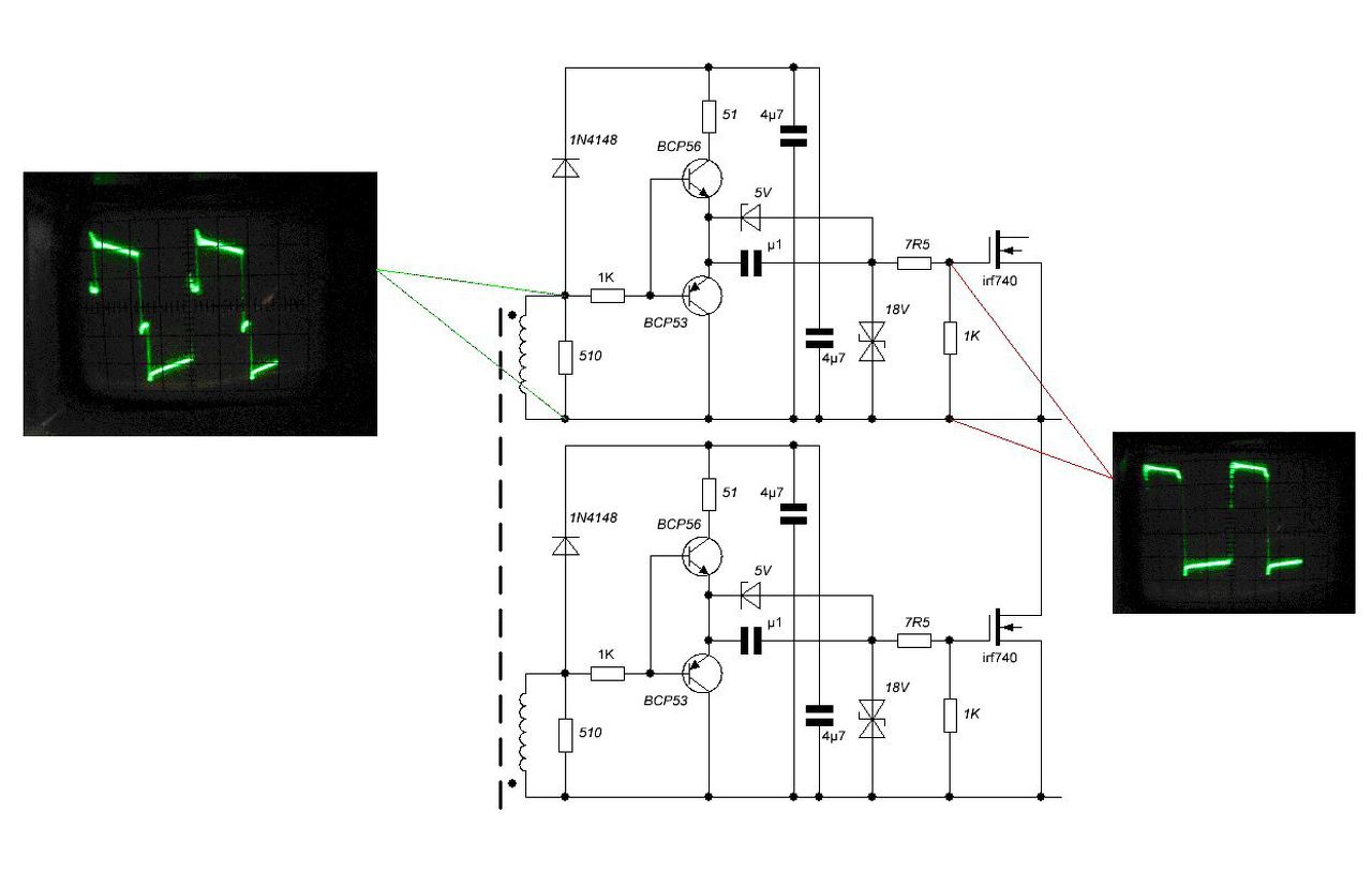 Van egy srác, láttam a gate trafós meghajtását, és olyan meredek fel le futású jel van neki, hogy az nem igaz. Mondom ilyen nincs. Próbáltam azt én is, de a közelébe se van az enyém annak. De így is jó. Nálam annyira bevált ez a gate meghajtós trafós táp, hogy nagyon. És nem értem miért, biztos sokat kellene szimulálni meg mérni, de az IR IC meghajtással akkor is rosszabb volt minden, mert melegedett a FET. Bocsánat, hogy így fanatikusan beleszólok.