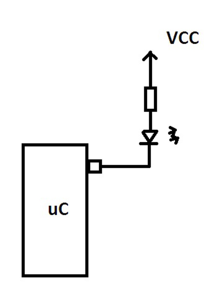 A bekötés jó, a nyitott nyelőelektródás mód viszont nem létkérdés, az általános célú totem-pole digitális kimenettel is működni fog. Remélem, persze, hogy az ábrán jelzett VCC a mikrovezérlő tápfeszültségével megegyezik...