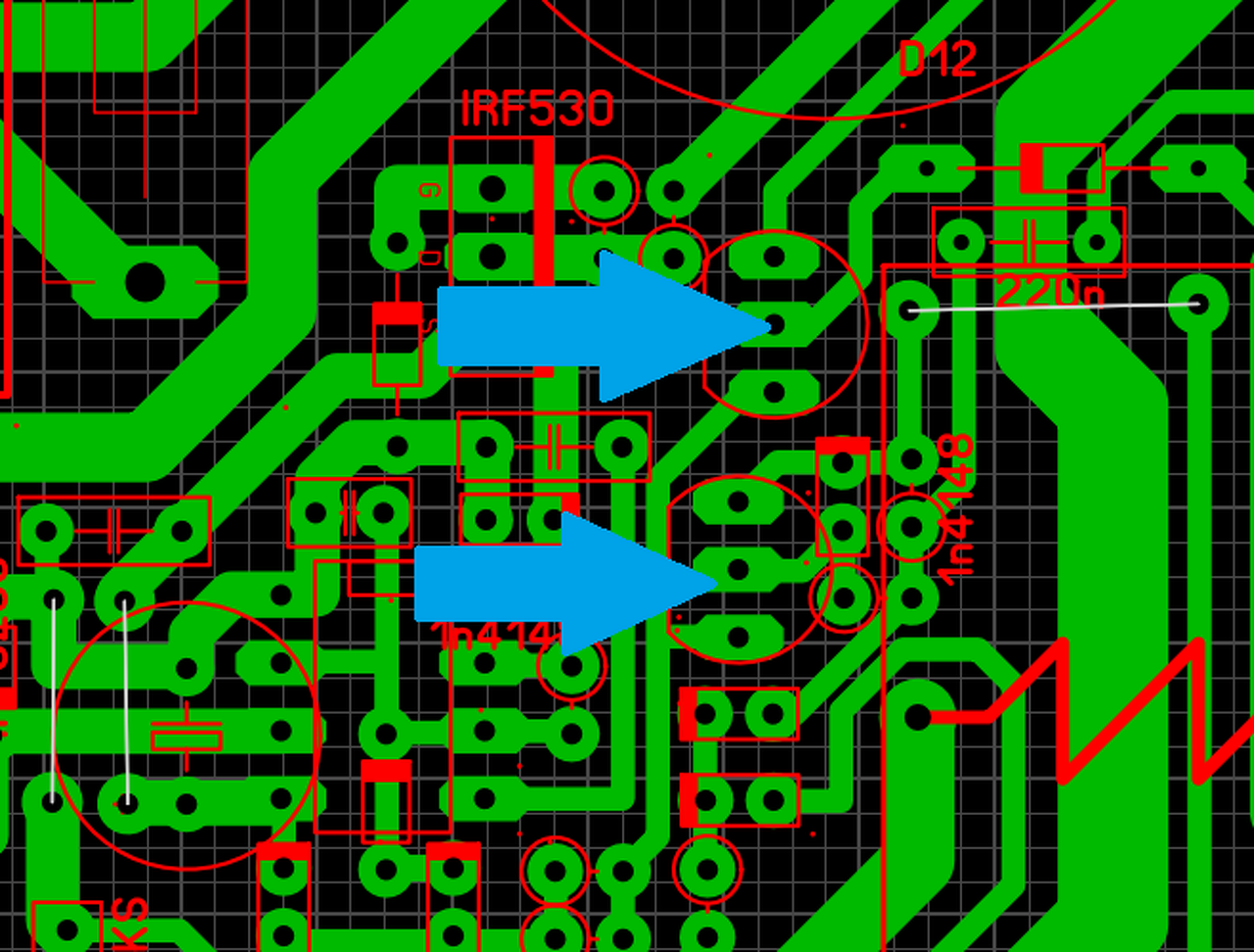 A kapcsolási rajz nekem ott se jön be. De őszinte leszek.. nekem a "gyári verzió se tetszik, főleg az ic lábak között feleslegesen cikázó vezetők.. Sok helyen teljesen feleslegesen.. A te verziódnál például a+- 5 voltos résznél a test nem megy tovább. A - ág felett a 2 zavarszűrő kondinál megszakad. A kijelző feletti vezérlő tranyók bázis vezetékei az icnél teljesen feleslegesen bujkálnak az ic lábai között, mivel a kijelző felett úgy is átkötésekkel van megoldva, ezért mehetnének szépen sorba is.. De ez is csak az én véleményem. Ugyanilyen elgondolásból szerintem a kijelző lábai között bujkáló vezetők is feleslegesek ha már az egyik fele úgy is átkötésekkel van megoldva még 2-3 simán beleférne és akkor a nyákot egyszerűbb lenne legyártani..