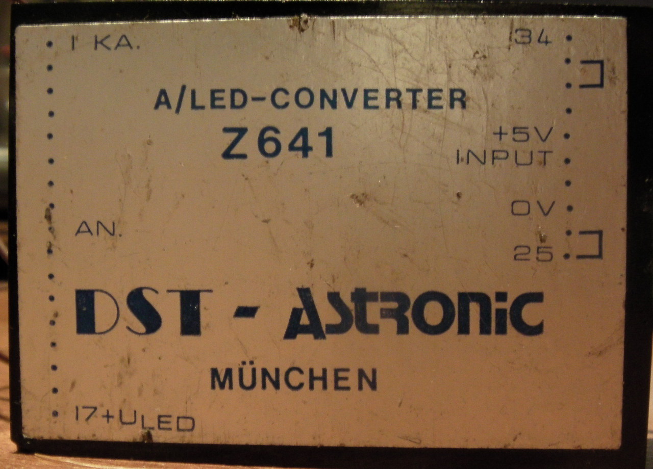 ![]() Ez egy 7x5x2 cm-es, zöld műgyantával kiöntött hasáb. A feliratból gondolom, hogy valami A/D átalakitó lehet. Esetleg valami kivezérlésjelző? A bal oldali 17 LED pont nem 7 szegmenses kijelző meghajtásnak tűnik. Ez a DST-ASTRONIC cég még az internet születése elött megszünhetett, azért nem találni róla semmit?