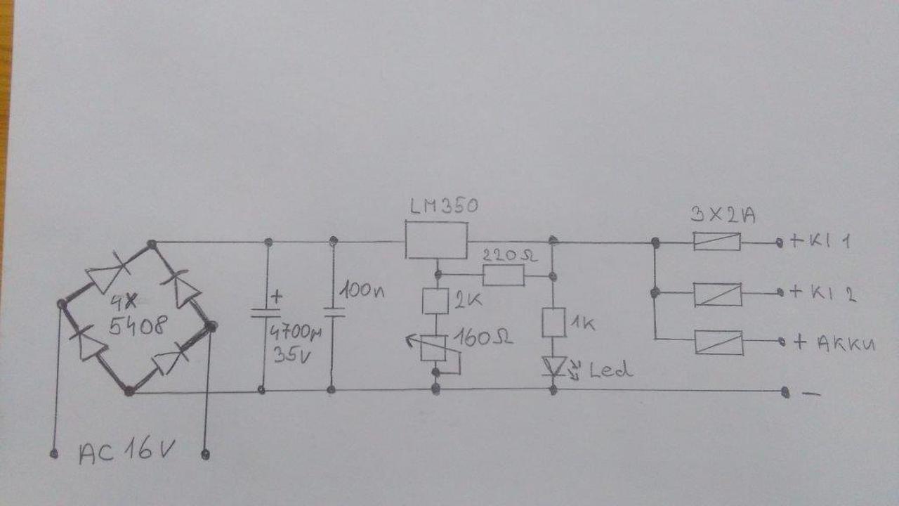 Lehetne egy diódát az akku kimenetre tenni, hogy fordított polaritás esetén ne legyen gond. De végül is ez egy gyári kapcsolás, azt hiszem a DSC-nek voltak ilyen segédtápegységei, azt rajzoltam vissza. Volt még LM317-el készített 1,5A-es, valamint 2 db LM317-el összerakott 3A-es tápegység is. Azokban volt polaritás csere elleni dióda, viszont áramkorlátozó ellenállás egyikben sem. Talán azért mert 13,6-13,8v-al küldte az akkut.